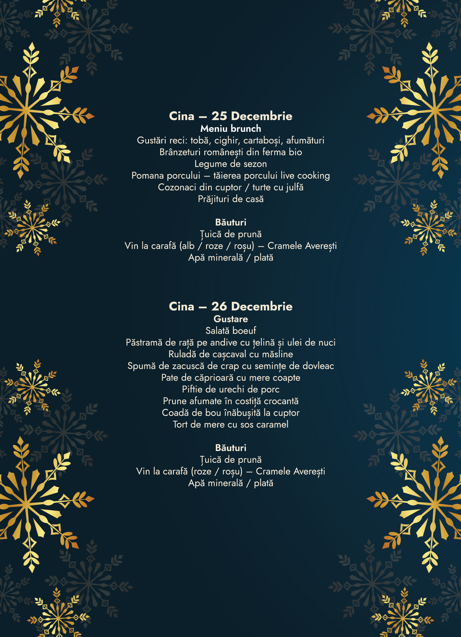 Alături de prospețimea și frumusețea ținutului moldovenesc preparatele tradiționale și servirea impecabilă completează experiență evenimentului dumneavoastră, devenind unic și de neuitat. Vă așteptăm cu drag!